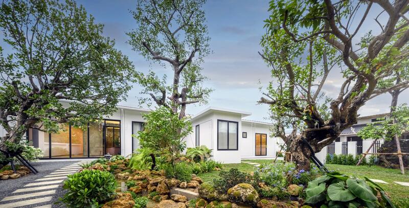 • ออกแบบ จัดสวนภูมิทัศน์อย่างดี รอบด้วยไม้มงคล