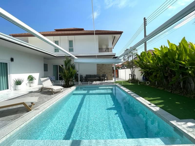 พูลวิลล่า 2 ชั้น กว้างขวาง ใช้เวลาเพียงประมาณ 5 นาทีถึงหาดจอมเทียน และประมาณ 10 นาทีถึงพัทยากลาง เดินทางสะดวก ใกล้ทางขึ้นมอเตอร์เวย์ไปกรุงเทพฯ ตัวบ้านมีความเป็นส่วนตัวสูง ไม่มีบ้านข้างเคียงมองเข้ามาได้โดยตรง และมีทางเข้า 3 ทาง คือ ทางเข้าหลัก ทางเข้าบริเวณสระว่ายน้ำ และทางเข้าห้องครัว ภายในบ้านมี 5 ห้องนอน รองรับได้ประมาณ 10 คน โดยมี 2 ห้องมาสเตอร์อยู่ชั้นล่าง และชั้นบนมีอีก 3 ห้องนอน พร้อมห้องทำงาน รวมทั้งหมด 6 ห้องน้ำ รวมถึงห้องน้ำสำหรับโซนสระว่ายน้ำ ภายในยังมีห้องนั่งเล่นขนาดใหญ่ ห้องครัวบิวท์อิน ห้องแต่งตัว และห้องซักล้าง ด้านนอกมีสระว่ายน้ำส่วนตัว ขนาด 3.5 x 6 เมตร พร้อมจากุซซี่ มีพื้นที่บาร์บีคิว ครัวไทยด้านนอก ห้องสตรีม และห้องซาวน่า สามารถจอดรถภายในบ้านได้ประมาณ 4–6 คัน และยังสามารถจอดหน้าบ้านเพิ่มได้อีก บ้านขายพร้อมเฟอร์นิเจอร์ครบ ทั้งบิวท์อินทั้งหลัง ชุดห้องนอน ทีวี เครื่องใช้ไฟฟ้า แอร์ ผ้าม่าน สวน และของแถมอีกหลายรายการ เหมาะสำหรับอยู่อาศัย บ้านพักตากอากาศ หรือซื้อเพื่อลงทุนในพัทยาได้เป็นอย่างดี