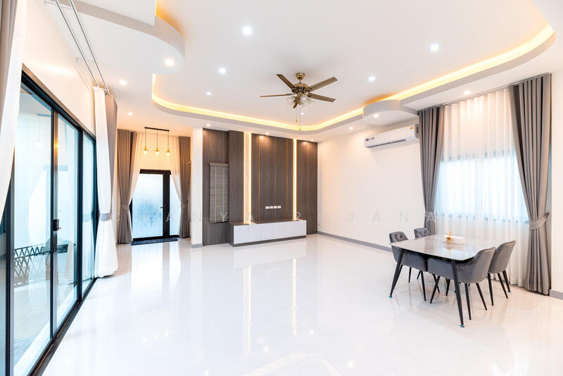 จุดเด่น: บ้านใหม่พร้อมอยู่ บ้านออกแบบโล่ง โปร่ง เพดานสูง ให้ความรู้สึกอบอุ่น สบาย อากาศถ่ายเทดี เหมาะกับการพักผ่อนในทุกวัน พื้นที่กว้าง สระว่ายน้ำส่วนตัว ทำเลสงบใกล้เมือง