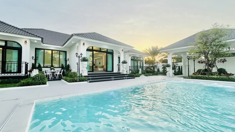รายละเอียด : บ้านเดี่ยว 1 ชั้น 5 ห้องนอน 6 ห้องน้ำ ห้องเก็บของ, ห้องครัว, โรงจอดรถ, ศาลานั่งเล่น, สระว่ายน้ำ