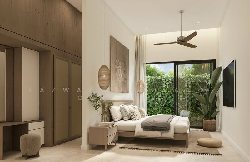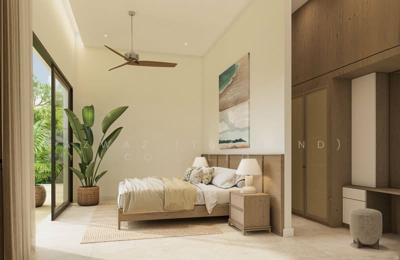 ห้องนอนทั้ง 3 ห้องให้ความเป็นส่วนตัว เหมาะสำหรับครอบครัวหรือผู้ที่ต้องการบ้านพักตากอากาศ บรรยากาศโดยรวมเน้นความเรียบง่าย สบายตา และใกล้ชิดธรรมชาติ