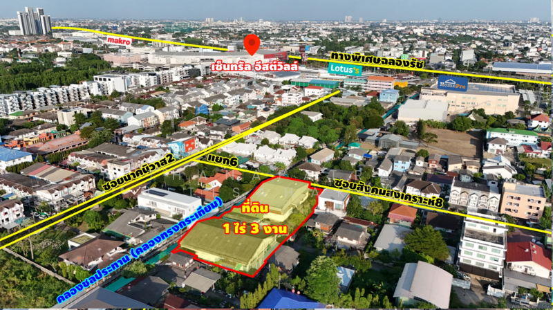 ขายที่ดิน 1ไร่ 3งาน พร้อมคลังสินค้า 2หลัง 560ตรม และ 540ตรม
