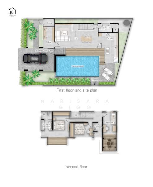 บ้านได้รับการออกแบบอย่างดี พร้อม สระว่ายน้ำระบบเกลือขนาดใหญ่ 8 x 4 เมตร มีการวางผังโครงการอย่างพิถีพิถันเพื่อให้พื้นที่สระว่ายน้ำมีความเป็นส่วนตัวสูงสุด พร้อมพื้นที่ ระเบียงไม้ (Decking) กว้างขวางสำหรับการพักผ่อนและทำกิจกรรมกลางแจ้ง