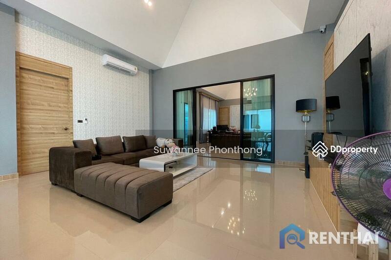 บ้านพูลวิลล่าชั้นเดียวเพดานสูง สไตล์โมเดิร์น 4 ห้องนอน 5 ห้องน้ำ 2 ห้องนั่งเล่น, ห้องซักรีด, ห้องพักผ่อน ครัวไทย และครัวยุโรป บ้านพร้อมเฟอร์นิเจอร์ครบครัน สถานที่ตั้งอยู่ใกล้กับชากนกและขับรถเพียง 10 นาทีถึงหาดจอมเทียน เดินทางสะดวกมากไม่ไกลจากมอเตอร์เวย์