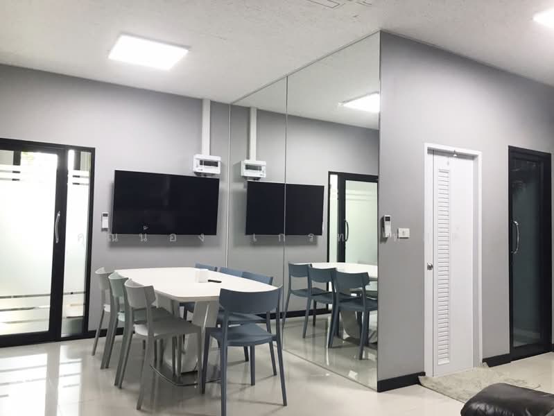ตกแต่ง : ตึกสำนักงาน 2 ชั้น พื้นที่ใช้สอย 288 ตร.ม ตกแต่งด้วยฟังก์ชันเรียบหรู เหมาะแก่การทำงาน ด้วย 1 ห้องประชุมใหญ่ 4 ห้องทำงาน 1 ห้องโถงรับแขก 1 ห้องรับประทานอาหาร 1 ห้องครัว 5 ห้องน้ำ 2 ห้องเก็บของ และ 1 ห้องแม่บ้าน พื้นกระเบื้องแกรนิตโต้ทั้งหลัง กระจกเขียวตัดแสง ม่านปรับแสง ไม่ร้อน ตัวอาคารโปร่ง โล่ง อากาศถ่ายเทดี วางระบบ LAN/ไฟฟ้าภายในอาคาร ฟรีแอร์มากถึง 9 ตัว พร้อมระบบโซล่าเซลล์ขนาด 10 KW. ช่วยประหยัดไฟได้มากสุดๆ พร้อมบริการฉีดปลวกรายปี ประตูรั้วไฟฟ้า และประตูเล็ก มีมุมติดป้ายชื่อสำนักงานชัดเจน พร้อมสวนสวย มุมนั่งเล่น