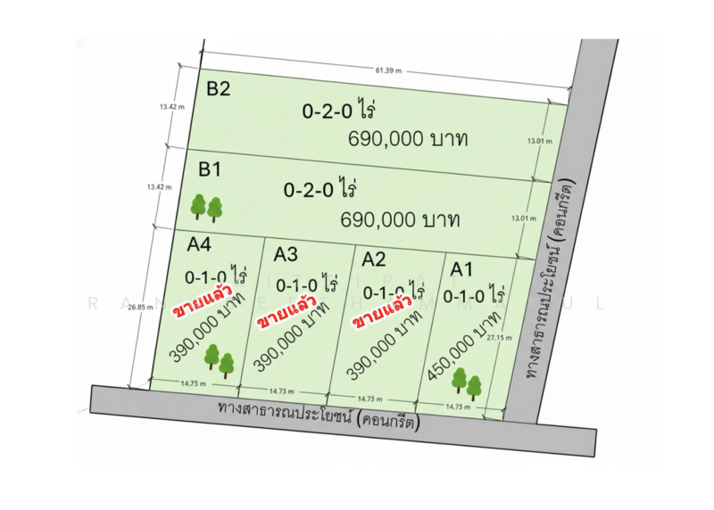 ขายผ่อนที่ดินแปลงเล็ก ติดถนนคอนกรีต เหมาะสำหรับสร้างบ้านหรือทำการเกษตร พื้นที่เริ่มต้น 100 ตร.ว. เพียง 390,000 บาท