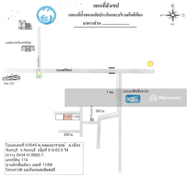 ที่ตั้งทรัพย์ เลขที่ 11/59 หมู่บ้านดิออเรียลทอลเซ็นซอรี่ บ่อเอก ถ.ตรีรัตน์ (ทล.3154)ตำบลคลองนารายณ์ อำเภอเมืองจันทบุรี จ.จันทบุรี