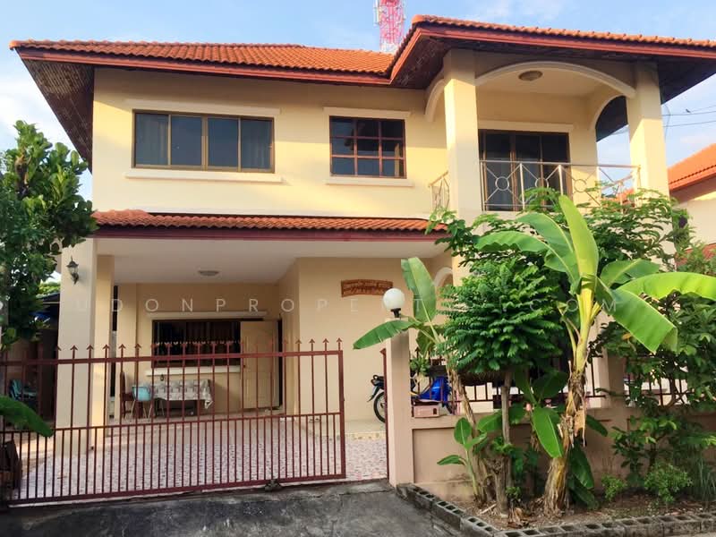 บ้านสองชั้นในโครงการหมู่บ้านจัดสรร ห่างจากถนนรอบเมืองเพียง 700 เมตร ใกล้สี่แยกวิทยาลัยพลศึกษาอุดรธานี โรงแรม สวนสาธารณะ และตลาดสด ภายในบ้านมี 4 ห้องนอน 2 ห้องน้ำ 1 ห้องรับแขก 1 ห้องครัวไทย มีบ้านหลังเล็กเป็นเรือนรับรอง 1 ห้องนอน 1 ห้องน้ำ มีเฟอร์นิเจอร์บางส่วน 3 แอร์ 1 เครื่องทำน้ำอุ่น มีปั๊มน้ำ + แทงค์น้ำ โรงจอดรถ 2 คัน รอบบ้านปูกระเบื้อง ปลูกต้นไม้ รู้สึกร่มรื่น ใกล้เมือง น่าพักอยู่อาศัย