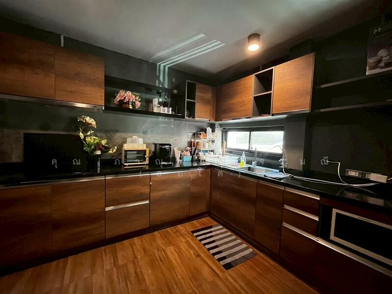 สูง 3 ชั้น มี 4 ห้องนอน 3 ห้องน้ำ 1 ห้องครัว และห้องโถงรับแขก จอดรถได้ 1 คัน แอร์ 4 ตัว ม่าน
