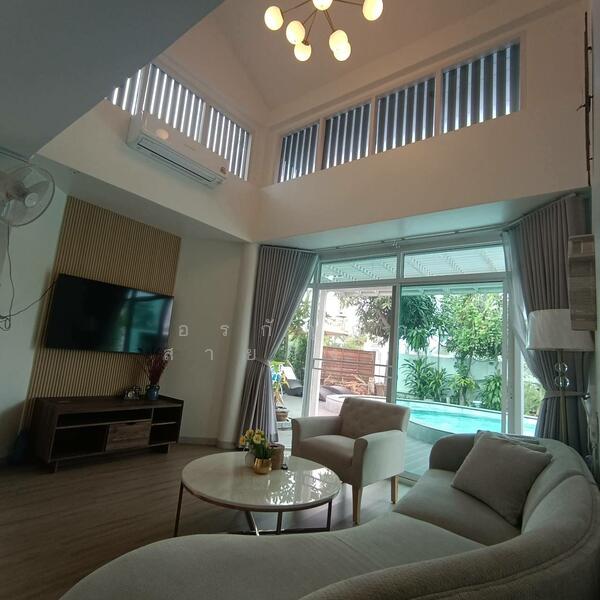 • หน้าบ้านจอดรถได้ 2 คัน มีสระว่ายน้ำระบบเกลือ และสวนส่วนตัวข้างบ้าน พร้อมโซนนั่งเล่นริมสระว่ายน้ำ