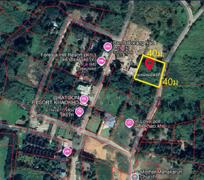 - หน้ากว้างประมาณ 40 เมตร ลึกประมาณ 40 เมตร
