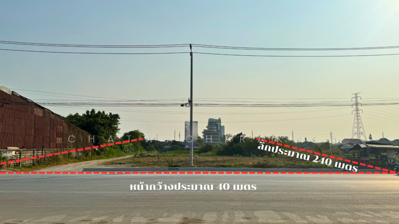 ขนาดที่ดิน 6 ไร่เศษ / หน้ากว้างประมาณ 40 เมตร ลึก 240 เมตร