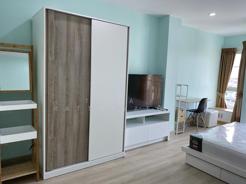 - เตียง 5 ฟุต, แอร์, โซฟา, ตู้เสื้อผ้า, ทีวี, ชั้นวางทีวี,