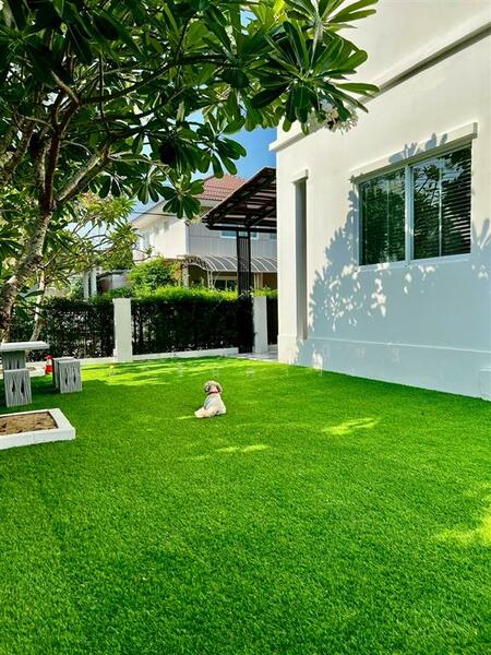 โครงสร้างแข็งแรง ข้างบ้านปูหญ้าเทียมสวยงามร่มรื่น มีพื้นที่ในร่ม ไว้นั่งเล่น พักผ่อนกับครอบครัว เนื่องจากเป็นหลังมุมทำให้บ้านมีอากาศที่ปลอดโปร่ง ลมพัดเย็นสบายตลอดทั้งวัน