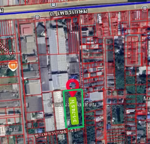 เหมาะทำโกดัง ให้เช่าที่ดินเปล่าระยะยาว 3-1-74.5 ไร่ ซอยเพชรเกษม 41