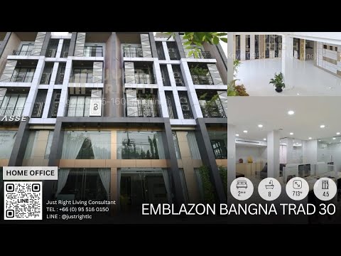 ให้เช่า อาคารสำนักงาน (Home Office) โครงการ Emblazon บางนาตราด 30, 2 ห้องนอน ห้องอเนกประสงค์ ห้องประชุมและอื่นๆ ห้องน้ำ 8 ห้อง ขนาดประมาณ 713 ตารางเมตร 51.5 ตารางวา 4.5 ชั้น ตกแต่งสไตล์ Modern Luxury พร้อมเฟอร์และเครื่องใช้ไฟฟ้า ราคาพิเศษเพียง 250,000 บาท/เดือนเท่านั้น