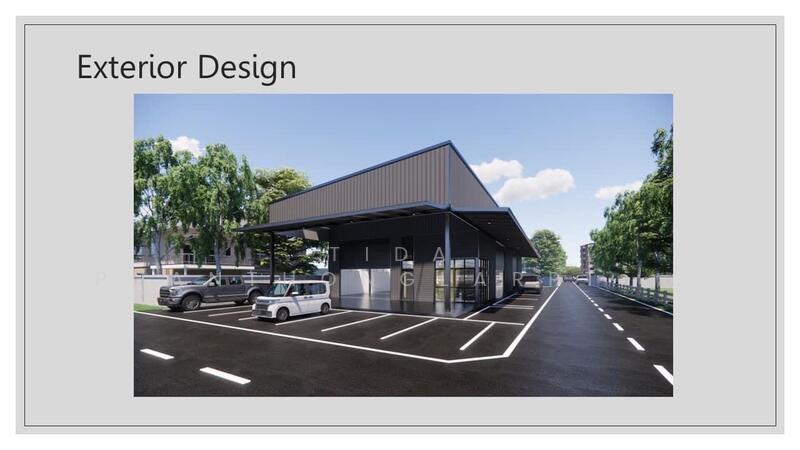 พื้นที่ใช้สอย 609 ตร.ม. พื้นที่ indoor 482.4 ตร.ม. ติดถนน 3 ด้านล้อมรอบที่ มีถนนใหญ่กว้างประมาณ 20 ม.