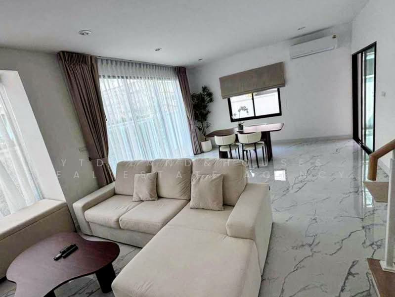 For Rent Semi-Detached house in Como Botanica 2. Convenient transportation, accessible via Bangna-Trat Road Km. 10, rear access to Mega Bangna, Kanchanaphisek Expressway, and Kingkaew Road. Features 3 bedrooms, 3 bathrooms, 1 multipurpose room. 24-hour security system. Beautiful house, ready to move in.