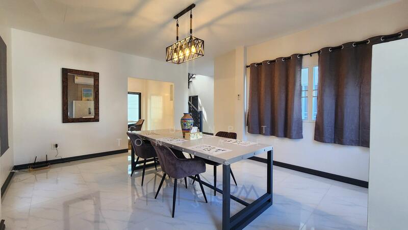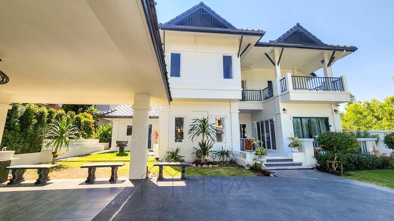 This striking property is situated at the end of a quiet cul-de-sac on the well-established Beverly Hills development. The local amenities are close by, and the centre of Hua Hin is only 2 km away. The property enjoys a prime elevated location at the boundary of the development, which affords open views towards the nearby mountains, coupled with a cooling seasonal breeze. The ground floor of the property is very spacious, comprising of a large lounge/sitting room, separate dining room and kitchen. The first floor has an en suite master bedroom, with a large balcony offering views over open countryside, followed by two further generously sized bedrooms. The property has 3 bathrooms and a toilet. Outside the property is blessed with a large garden, driveway, barbecue area and covered parking. Wifi is included. Pets not allow.