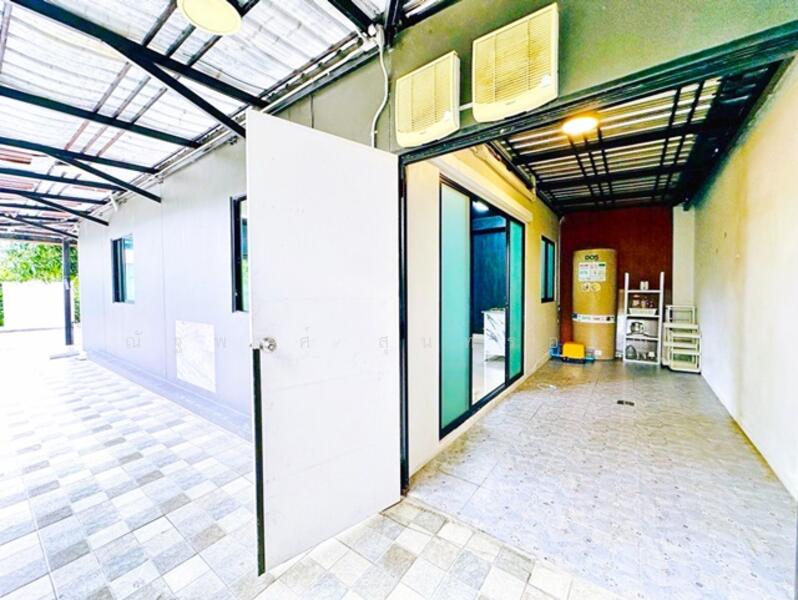 - มีต่อเติมหลังคากันสาดด้านหน้านั่งเล่น