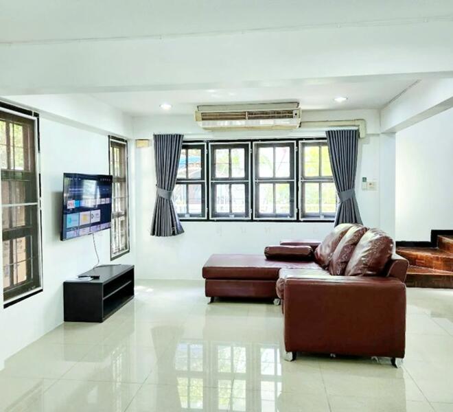 MRT Sammakorn 200m. Detached 2story corner house for rent Ramkhamhaeng 110-112 Prime location Spacious house fully furnished 2-3bed 3 bath Stamford International University 3 km away Suitable for residential or business use 64 sq.wa. 260 sq.m. 26,999 B-M. Convenient transportation quality community atmosphere 2.3 km. from Ban Ma Intersection Ramkhamhaeng Road.