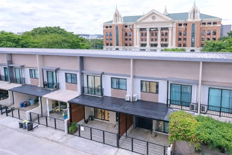 Soi ABAC Bangna Townhome for rent 3 bed 2 bath near BangBo Market 18sq.wa. 145 sq.m. usable area located in Bang Na Bang Bo 600 m. from Assumption University Bang Na 10,499 THB per month peaceful atmosphere house opposite a park ideal for living convenient transportation near Bang Bo Temple with two access routes