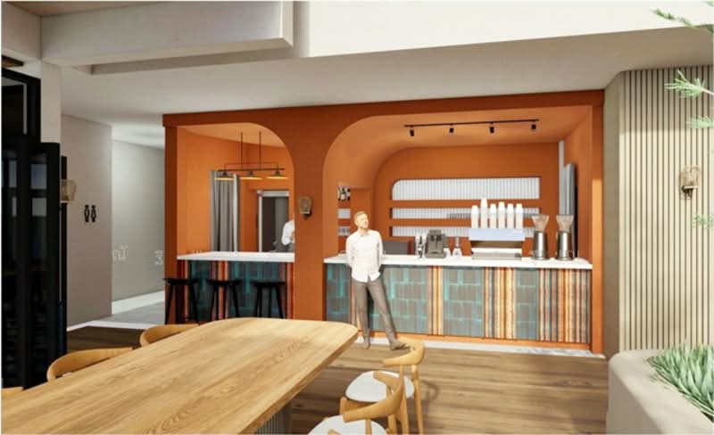 สีแดง: เคาน์เตอร์บาร์ + ครัว