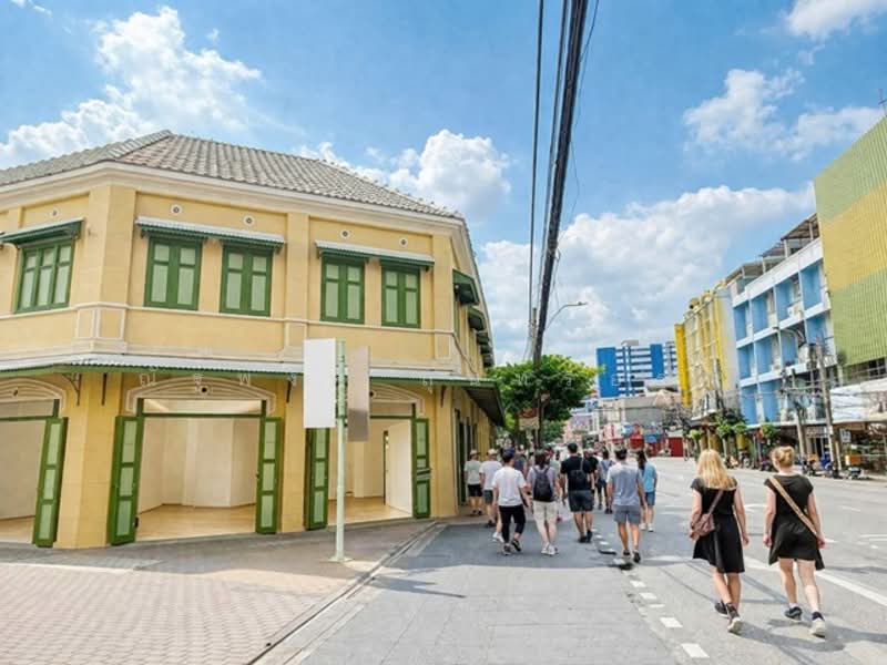 Bus stop sign on Yaowarat Rd. MRT Wat Mangkon 350m Sampeng Market 900m. commercial rental space Floor 1 only. 14 sq.wah 55sq.m suitable for retail cafe 74,999-79,999B-M shared bathroom located in a dense community near offices convenient transportation close MRT lifestyle hubs land size usable area efficient layout with good frontage for business visibility and display