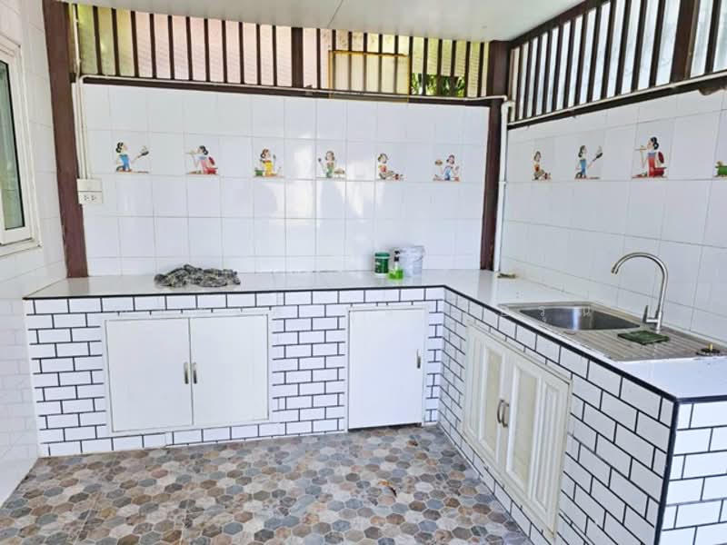 มีพื้นที่ครัวด้านหลังบ้าน สามารถจัดทำเป็นครัวไทย หรือพื้นที่ซักล้างได้ พร้อมที่จอดรถหน้าบ้าน 1 คัน