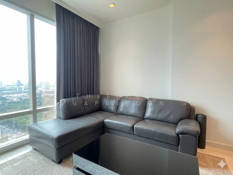 จุดเด่น: ห้องรับแขกเพดานสูง กว้างขวาง โปร่งสบาย พร้อมกระจกบานใหญ่รับวิวเมืองแบบเต็มสายตา