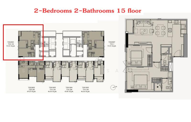 - 2-Bedroom 2-Bathroom ขนาด 74 ตารางเมตร