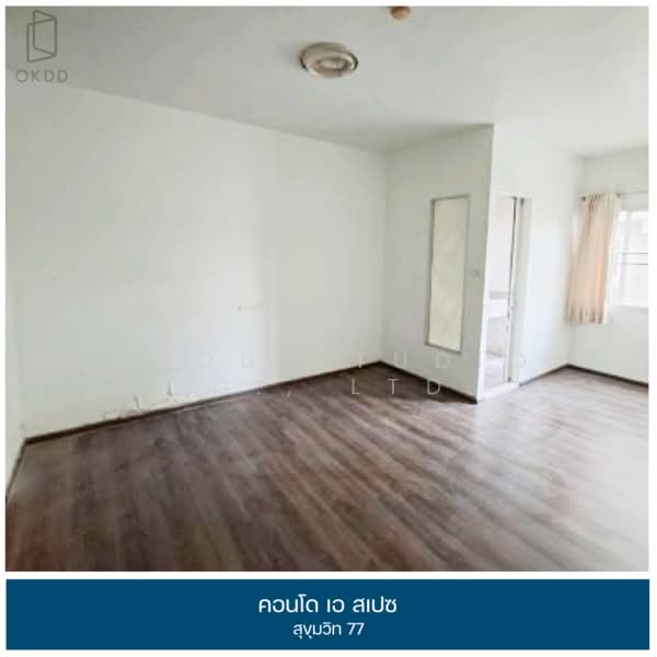 โครงการคอนโดมิเนียมโลว์ไรส์ ย่านสุขุมวิท77 ราคาเริ่มต้นต่ำกว่า 2 ล้าน A SPACE สุขุมวิท 77 คอนโดที่มาในคอนเซ็ป Urban Lifestyle ในขนาด Low Rise เพียง 7-8 ชั้นเท่านั้น ทุกยูนิต A SPACE สุขุมวิท 77 ออกแบบมาให้มีสเปซส่วนตัว แบบ Minimal แต่ภายในห้องทั้งแบบสตูดิโอและ 1 ห้องนอน พร้อมสรรพไปด้วยการออกแบบ Fully-Furnished ครบครันด้วยเฟอร์นิเจอร์และของใช้แบบมาแต่ตัวกับเสื้อผ้าก็พร้อมเข้าอยู่ A SPACE สุขุมวิท 77 ทันที A SPACE สุขุมวิท 77 คอนโด 6 อาคาร มีบรรยากาศดี เห็นวิวสระว่ายน้ำ ซึ่งA SPACE สุขุมวิท 77 ตกแต่งเรียบร้อย แถม ตู้เย็น เครื่องทำน้ำอุ่น และ แอร์ ไดกิ้น inverter 18,000 BTU 1 เครื่อง 1 ห้องนอน 1 ห้องน้ำ 1 ห้องนั่งเล่น(ห้องรับแขก) ระเบียง A SPACE สุขุมวิท 77 หันไปทางทิศตะวันออก ไม่โดนแดดบ่าย ลมดี ติดอาคารจอดรถ ไม่ต้องเดินไกล A SPACE สุขุมวิท 77 มาพร้อมที่จอดรถ 1 คัน ขายพร้อมเฟอร์นิเจอร์ พร้อมเข้าอยู่ได้ทันที นอกจากนี้ A SPACE สุขุมวิท 77 ยังใกล้รถไฟฟ้า BTS อ่อนนุช, พระโขนง, airport link หัวหมาก 3 กม. เพียงเท่านั้น A SPACE สุขุมวิท 77 ตั้งอยู่ในซอยสุขุมวิท 77 ระหว่างถนนสุขุมวิทและถนนศรีนครินทร์ เดินทางสะดวกไม่ว่าจะเข้าสู่ใจกลางเมืองหรือย่านช็อปปิ้งขนาดใหญ่ในกรุงเทพตะวันออก ทั้งซีคอน สแควร์ และพาราไดซ์พาร์ค A SPACE สุขุมวิท 77 มาพร้อมสระว่ายน้ำกว้าง 8 เมตร ยาว 50 เมตรกั้นกลางอาคาร และสวนแบบ Urban Park กว้าง 12 เมตร พร้อมตัวอาคารจอดรถแยกเป็นสัดส่วนออกจากส่วนพักอาศัย เพื่อความสงบและเป็นส่วนตัวโดยเฉพาะ A SPACE สุขุมวิท 77 กับสเปซแบบ One Bedroom และแบบ Studio ห้องพัก Fully-Furnished ครบครันด้วยเฟอร์นิเจอร์ของตกแต่งและของใช้ในชีวิตประจำวันใน A SPACE สุขุมวิท 77 อาทิ โซฟา ตู้เสื้อผ้า โต๊ะทำงาน โต๊ะทานอาหาร เก้าอี้ ตู้รองเท้า เตียงนอน ผ้าม่าน ผ้าปูที่นอน ผ้าห่ม หมอน แก้วน้ำ จานชาม ช้อนส้อม รองเท้าแตะ ร่ม และแม้แต่ แปรงสีฟัน ฯลฯ การเดินทางโดยใช้รถไฟฟ้า A SPACE สุขุมวิท 77 สามารถเดินทางได้ทั้ง BTS อ่อนนุช, พระโขนง, airport link หัวหมาก 3 กม. และในอนาคต A SPACE สุขุมวิท 77 ยังใกล้สถานีรถไฟฟ้าสายสีเหลือง ศรีนุช ที่ห่างประมาณ 1 กม. การเดินทางโดยรถยนต์ A SPACE สุขุมวิท 77 สามารถเข้าออกได้หลายเส้นทางทั้ง สุขุมวิท และศรีนครินทร์ ใกล้จุดขึ้นลงทางด่วนพระราม 9 ถ.ศรีนครินทร์ เอกมัย-รามอินทรา นอกจากนี้ A SPACE สุขุมวิท 77 ยังใกล้ทางด่วน สุขุมวิท 62 ห่างถนนสุขุมวิท ประมาณ 4 กม. A SPACE สุขุมวิท 77 ตั้งอยู่ใกล้แหล่งอำนวยความสะดวกและสามารถเดินทางไปได้หลากหลายทาง จึงนับได้ว่า A SPACE สุขุมวิท 77 เป็นแหล่งที่อุดมสมบูรณ์เลยก็ว่าได้ อาทิ สถานีขนส่งเอกมัย วัดธาตุทอง ห้างสรรพสินค้าซีคอนสแควร์ บิ๊กซี เอ็กซ์ตร้า ห้างพาราไดซ์ พาร์ค Tesco Lotus และธัญญะช็อปปิ้งพาร์ค ชื