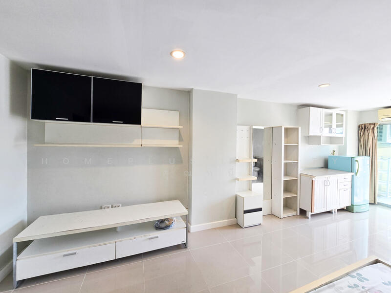 การตกแต่ง : ห้องสวยกว้าง โปร่งสบาย พื้นปูด้วยกระเบื้องแกรนิตโต้เงางาม ช่วยให้ห้องดูสะอาดและหรูมากขึ้น ผนังด้านข้างติดตั้งบิวท์อินชั้นวางทีวีและชั้นเก็บของ เพิ่มพื้นที่ใช้สอยให้เป็นระเบียบ โซนครัวจัดเต็มด้วยเคาน์เตอร์บิวท์อิน ชั้นวาง และตู้เก็บของ พร้อมใช้งานจริง ภายในมีเฟอร์นิเจอร์ครบชุด ทั้งเตียง ตู้เสื้อผ้า ชั้นวางของ และทีวี พร้อมเข้าอยู่ได้ทันที