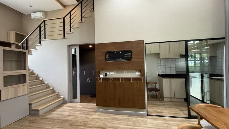 - Inspiring Space: ห้องนั่งเล่นเพดานสูง (Double Volume) เพดานสูงโปร่ง รับแสงธรรมชาติเต็มๆ เหมาะเป็นทั้งที่พักผ่อนและที่ทำงาน
