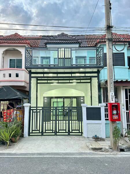 บ้านรีโนเวทใหม่ สวย พร้อมอยู่ ต่อเติมเทอเรสหน้าบ้าน และต่อเติมครัวแล้ว ถนนเมนหน้าบ้านกว้าง 10-12 เมตร