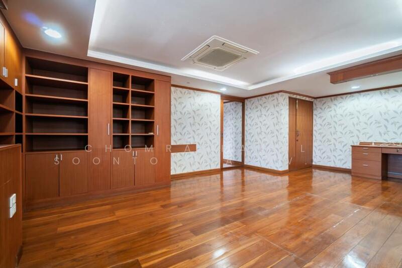 This generous 254 square meter freehold condo sits on a high floor in Asoke Tower. The residence offers a warm classic interior with extensive built-in woodwork and city skyline views. It is fully furnished and ready to move in.