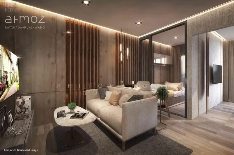 ขาย คอนโดตกแต่งพร้อมอยู่ 2 ห้องนอน 1 ห้องน้ำ ขนาด 33.51 ตารางเมตร ชั้น 4, โครงการ แอทโมซ รัชดา-ห้วยขวาง