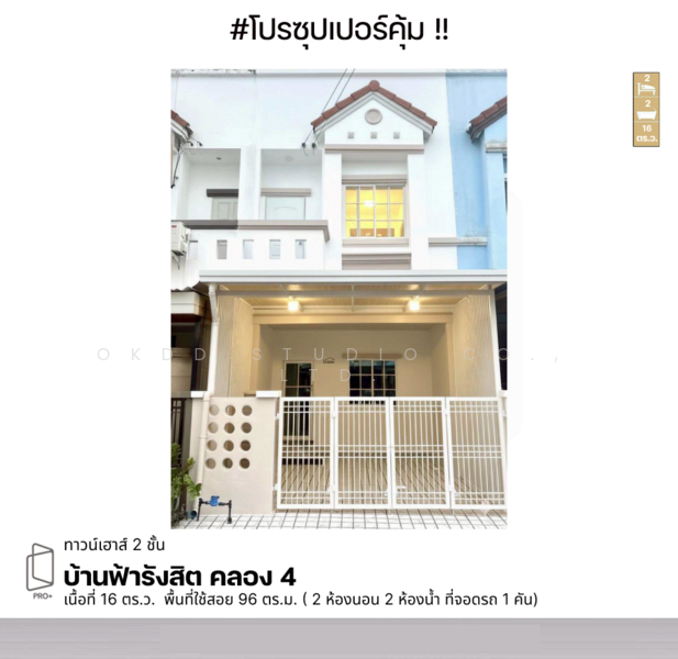 ทำเลเทพ! เดินถึงถนนใหญ่แค่ 90 เมตร บ้านฟ้ารังสิต คลอง 4