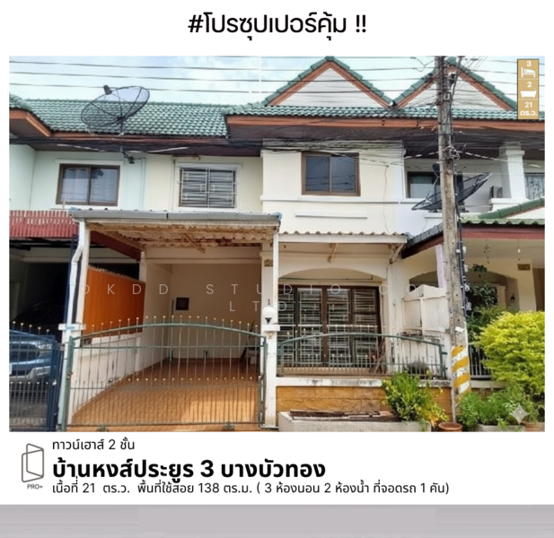 เนื้อที่ 21 ตร.ว. พื้นที่ใช้สอย 138 ตร.ม.