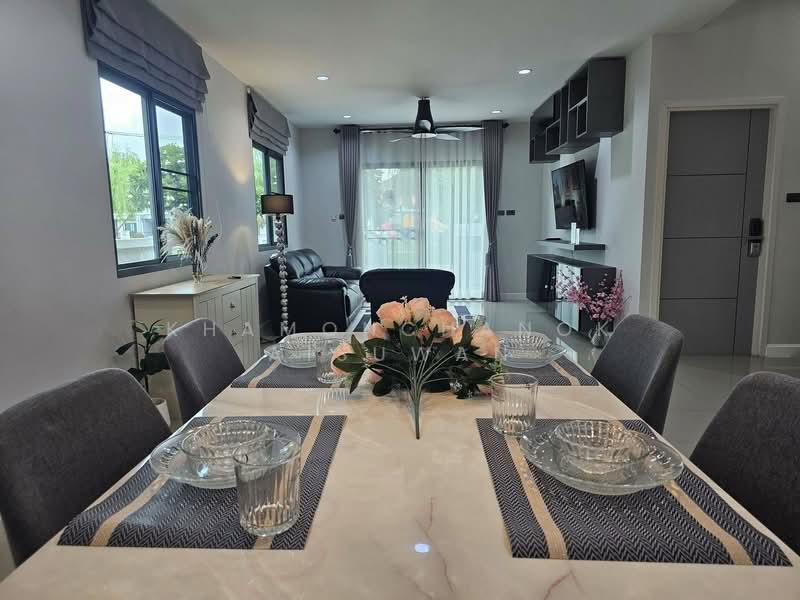 บ้านมีพื้นที่นั่งเล่นและรับประทานอาหารแบบเปิดโล่ง เหมาะทั้งสำหรับพักผ่อนและต้อนรับแขก ห้องนอนแต่ละห้องมาพร้อมห้องน้ำในตัว เพิ่มความสะดวกสบายและความเป็นส่วนตัว หน้าต่างบานใหญ่ช่วยให้บ้านสว่างและอบอุ่น พร้อมพื้นที่ภายนอกสำหรับพักผ่อน ทำสวน หรือเพลิดเพลินกับอากาศสบาย ๆ ของเชียงใหม่
