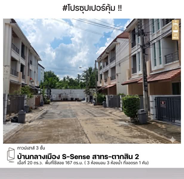 ทาวน์โฮม บ้านกลางเมือง S-Sense สาทร-ตากสิน 2 ใกล้ โฮมโปร