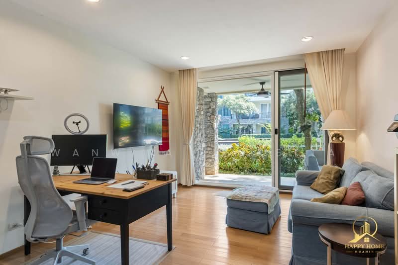 ห้องแบบ Patio Living ชั้นล่าง ขนาดกว่า 95 ตร.ม. ให้ความรู้สึกเหมือนบ้านพักตากอากาศ มีระเบียงกว้างเชื่อมต่อสวนและสระว่ายน้ำโดยตรง ภายในประกอบด้วย 2 ห้องนอน 2 ห้องน้ำ และห้องครัวที่รีโนเวทใหม่ในปี 2022 พร้อมอุปกรณ์คุณภาพ เช่น เตาและเตาอบ Electrolux ตู้เย็น Sharp และระบบกรองน้ำดื่มในตัว