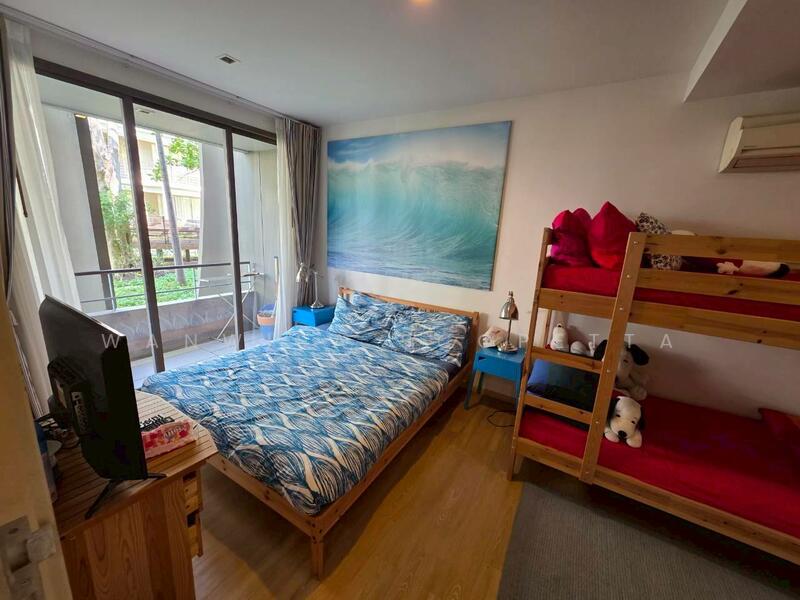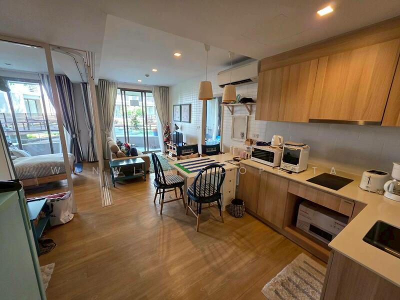 คอนโด 2 ห้องนอน 2 ห้องน้ำ พร้อมเฟอร์นิเจอร์ครบครัน ตั้งอยู่บนชั้น 2 มอบพื้นที่ใช้สอยที่โปร่งสบายและวิวสวนอันเงียบสงบ