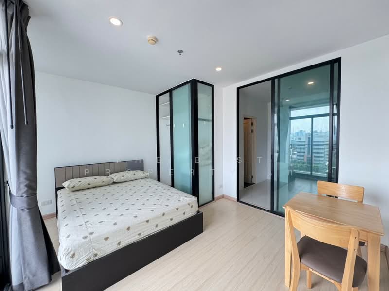 ห้องขนาด 27.1 ตร.ม. พร้อมประตูกระจกบานเลื่อนกั้นห้องนอน แยกสัดส่วน