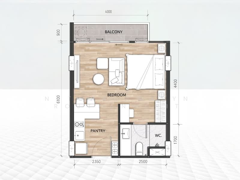 - สตูดิโอ, 1 ห้องน้ำ