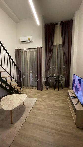 1 ห้องนอนแบบ Duplex เพดานสูง 4.5 เมตร แยกห้องนอนและห้องนั่งเล่นเป็นสัดส่วน เหมาะกับการพักอาศัยเป็นครอบครัว
