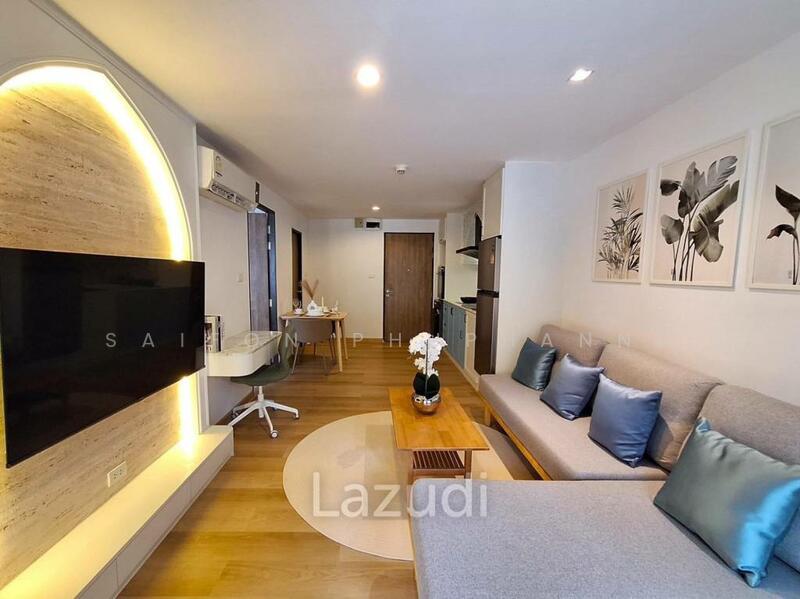 ห้องออกแบบสไตล์โมเดิร์นโทนสีอบอุ่น ดูสบายตาและไม่อึดอัด พื้นห้องปูด้วยลายไม้ให้ความรู้สึกใกล้ชิดธรรมชาติ พื้นที่นั่งเล่น ห้องครัว และมุมรับประทานอาหารเชื่อมต่อกันแบบเปิดโล่ง ใช้พื้นที่ได้คุ้มค่าและเคลื่อนไหวสะดวก ตกแต่งพร้อมเข้าอยู่เหมาะสำหรับผู้มองหาห้องพร้อมเฟอร์นิเจอร์ครบ