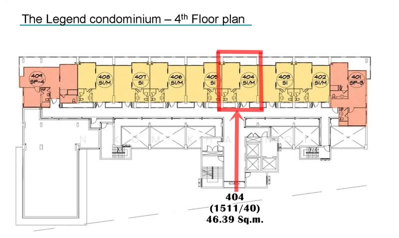 ขนาด 46.39 ตร.ม., ชั้น 4