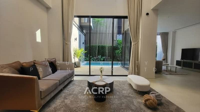 ให้เช่าบ้านเดี่ยว BuGaan พระราม 9 - เหม่งจ๋าย โครงการมีเพียง 8 หลัง เสนอความเป็นส่วนตัวสูงสุดด้วยลิฟท์ส่วนตัว สระว่ายน้ำและวิวสวนที่กว้างขวาง บ้านนี้มีพื้นที่ 73 ตารางวา (522 ตารางเมตร) ประกอบด้วย 4 ห้องนอนหลักพร้อมห้องสำรอง (สามารถแบ่งห้องได้) 5 ห้องน้ำ ที่จอดรถ 4 คัน ห้องพี่เลี้ยงพร้อมห้องน้ำ และสระว่ายน้ำในตัวบ้าน
