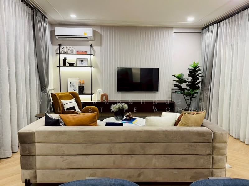 House for Rent, CHAIYAPRUEK Bangna KM.15 Show house, fully furnished, ready to move in. Beautiful plot, near the park and clubhouse.